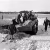 Lastbil igennem isen på søen ved Gravlunden, februar 1955