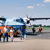 Passagerer på vej ud af fly i Esbjerg Lufthavn, august 1997