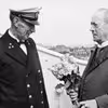 Kaptajn Ulv modtager blomster ved Englandsbåds første anløb, maj 1946