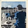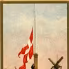 Tegning af et blafrende Dannebrogsflag på Dybbøl