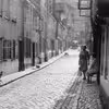 Gaden ses oppefra ned mod havnen, børn og voksne