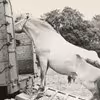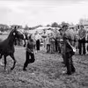 Hestemarked på den gamle markedsplads. Hest ledes op i lastvogn.
