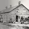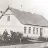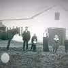 Familie med deres hest foran deres ejendom, sandsynligvis i Veerst