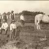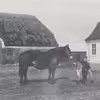 Bække Mose. - Pige med hest spændt for en trolje til transport af tørv fra tørvegraven til tørrepladsen