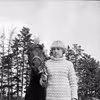 Ejer og hans familie fotograferet sammen med deres hest og hunde foran ukendt gård i Veerst