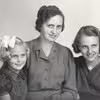 Gudrun Lynggaard Sylvestersen med døtrene Inger Helga Hvidgaard Poder (tv.) og Elisabeth Hvidgaard Poder (th.), Bække