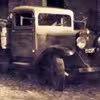 Chauffør Andreas Jørgensen ved købmand Christiansens pakhus i Bovrup.
