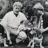 Grevinde Karin og grev Hans Schack med deres Bassett-hunde. 1978.