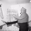 Fhv. fisker Claus Henrik Hansen Dvinge (1873-1956) bygger modelskib, Bredballe, 1954