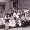 Lærere og elever i skolegården ved Vejle Højere Almenskole, ca. 1913