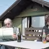Familien Pallesen ved deres kolonihave, Sandagergård, ca. 1955