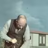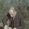 Jørgen Pallesen (1881-), i sin kolonihave, Sandagergård, ca. 1955