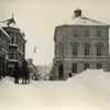 Tegning (original) - Løveapoteket og Rådhustorvet i snevejr, Vejle, ca. 1938