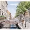 Akvarel (tryk) - Dæmningen og Mølleåen i Vejle, 1920