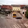 Trafik omkring rundkørslen på Nørretorv, Vejle, 1953