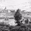 Litografi - Nørup Kirke og Engelsholm Sø, 1866
