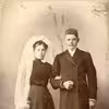 Portræt (brudepar) - Anna Marie Nielsen (1878-) og Jørgen Peter Andersen (1878-), 1901