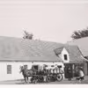 Hestevogn og mandskab klar på gårdspladsen. 1920-40.