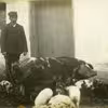 Kolding. Gøhlmannsvej 136. Bagbygningen/stalden. Grise på vej ind i stalden.