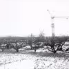 Kran i æblehaven hvor Simon Peters Kirke opføres.