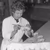 Kolding. Dekoration af marcipangrise ved konditor Klaaborg.