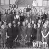Deltagere i skolekomedie på Sct. Nicolai Skole, lærer Lomholdt.