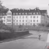 Aalykkeskolen. I baggrunden huse i Skovbogade.