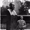 Johannes C. Bjerg ved sin buste af Jens Andersen Hansen.