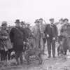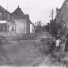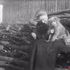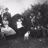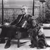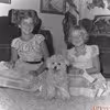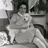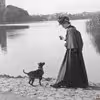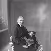 Ukendt dame med hund på gårdspladsen på Bøgelund.