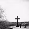 Midlertidigt mindesmærke rejst over døde frihedskæmpere.