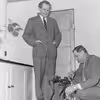 Rådhuset set fra Vestergade. Pensionister på vej ind på socialkontoret efter månedens pension.