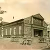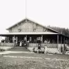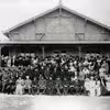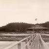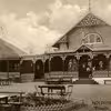 Forsamling på varandaen foran Løverodde Restaurationen.