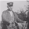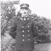 Niels Peter Petersen, togfører ved Sydbanen ca. 1940. Petersen i uniform. Postkort