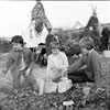 En gruppe børn leger indianere på Århusbakken