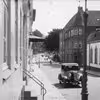 Bil på vej op ad Østergade - set fra ejendommen Østergade 13