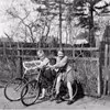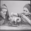 To børn leger "far, mor og børn" med dukkevogn med kaleche