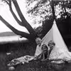 Børn og voksne fra børnehjemmet C. Knaps Minde på sommerophold på Ahl Hage-lejren ved Ebeltoft