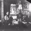 Interiør: Familien Jens og Karen Bomholt siddende i stuen