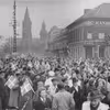 Torvet i Silkeborg med mange danskere, der byder engelske soldater velkommen
