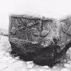 Ornamenteret sten. Formentlig fra nedbrudt kirke.