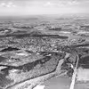 Luftfoto ud over byen. Set mod Silkeborg Langsø. I forgrunden to jernbanespor med Jernbanebroen over Remstrup Å