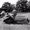 Høst med traktor og selvbinder på Kirsebærgårdens mark ved Langdalsvej i Svejbæk