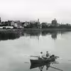 Robåd på vej over Silkeborg Langsø med to mænd og en cykel