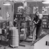 Silkeborg Børnebibliotek. Interiør. Personalet i hjørnet med småbørnsbøger