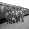 Medarbejdere fra Silkeborg Maskinfabrik på perronen på vej på udflugt