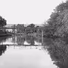 Udsigt fra Papirfabrikkens have mod Viborgbroen; den lille træbro fører over til Slotsholmen