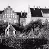 Udsigt fra Frederiksberggade 17 mod baggården. Bygningen på tværs bagest på arealet hørte med til Frederiksberggade