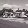 Hjørnet Christian 8.s Vej/Østergade set fra Østergadekrydset. T.h. efter Shell-tankstationen ses Reimar Nielsens Tømmerhandel