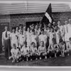 Gymnastikhold ved forsamlingshus, Sevel, ca. 1950.