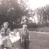 Rasmus Skaaning 1953 med sit barnebarn Mads Lundgaard Madsen, søn af Ragnhild Skaaning og Holger L. Madsen i Galtmose.